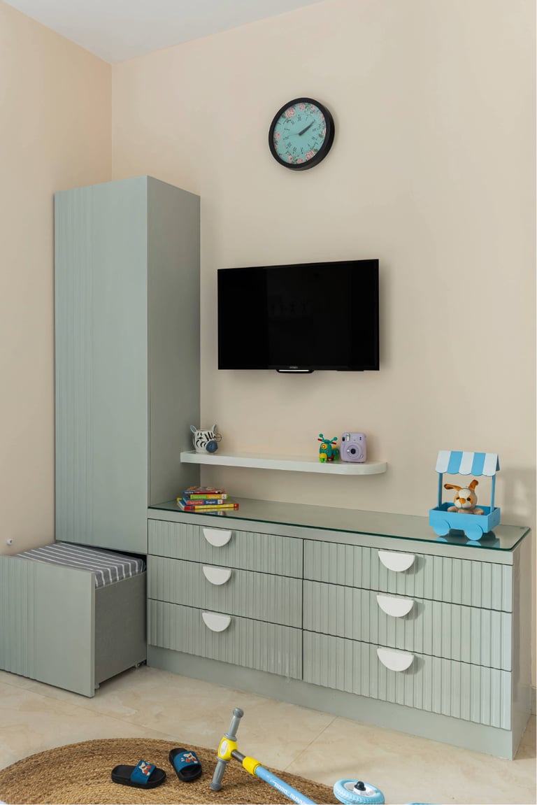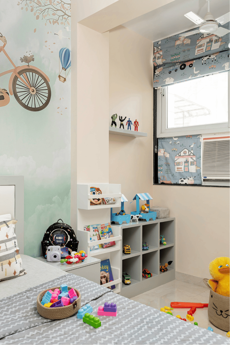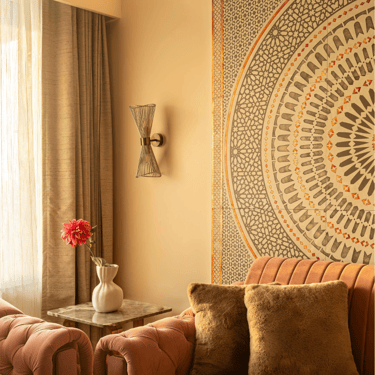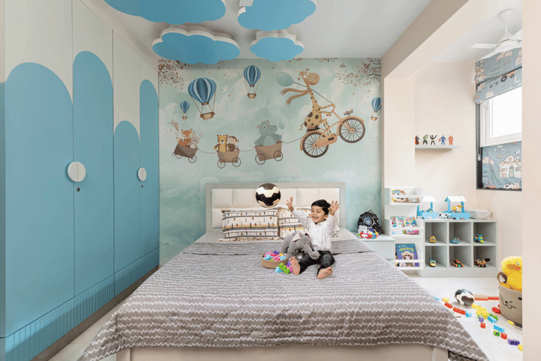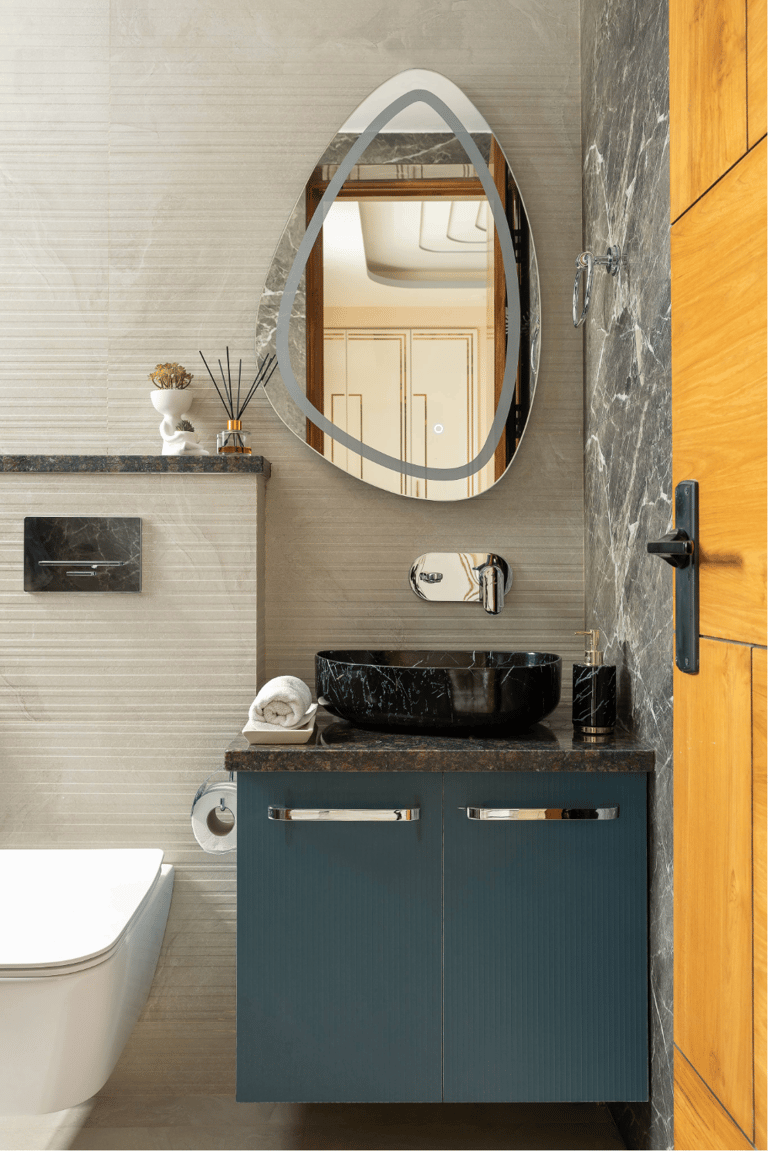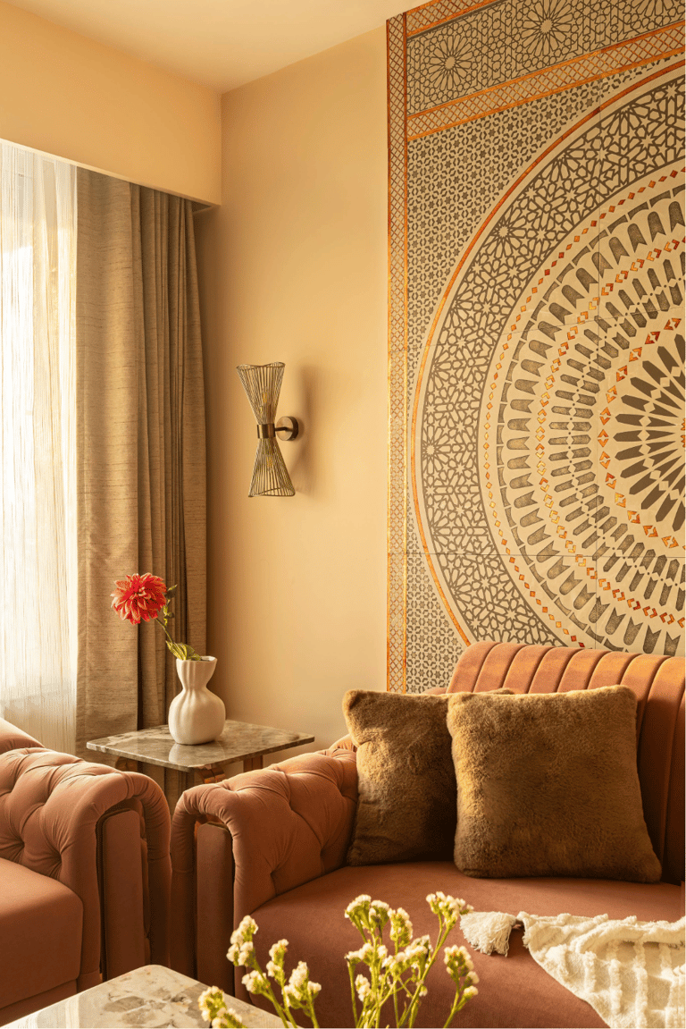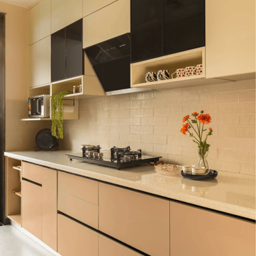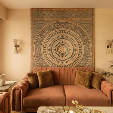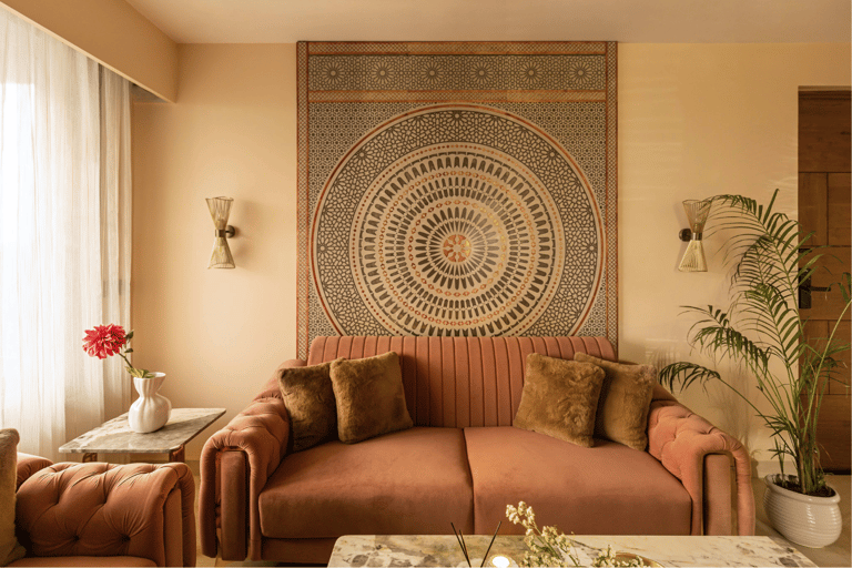 The design journey for this home began with addressing its primary challenge — limited natural light despite a favourable orientation. Large windows were introduced to invite daylight into the interiors, transforming the atmosphere and creating a brighter, more uplifting living environment. The overall palette embraces calm neutral tones complemented by natural textures such as rattan, reflecting the client’s desire for a home that feels closely connected to nature. A mural feature wall in the living space adds a serene focal point, while the onyx and marble surfaces subtly interact with natural light to create warmth and depth. Thoughtfully designed and intentionally clutter-free, the home balances elegance with comfort, allowing each space to feel open, calm, and effortlessly inviting.